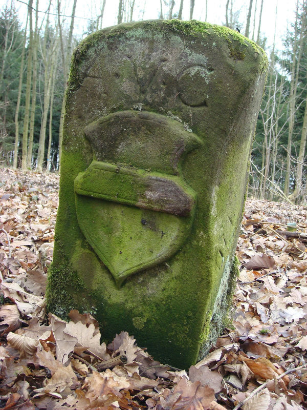 Dieser Grenzstein in der Nähe von Niedersteinach, Gemeinde Ilshofen (Landkreis Schwäbisch Hall) markiert heute eine Gemarkungsgrenze, stammt aber aus längst vergangenen Tagen und ist nur von einem Geschichtskundigen zu deuten. „A V C“ bedeutet nämlich „Albrecht von Crailsheim“ und stammt aus der Zeit vor 1803, als der Weiler Niedersteinach im Besitz der Freiherren von Crailsheim war.