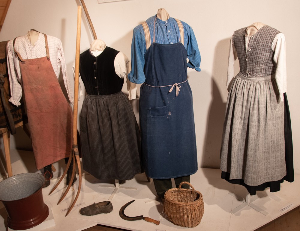 Damals lebte man nachhaltig. Man achtete auf Qualität und wo es nötig war, wurde geflickt und ausgebessert. Alles wurde so lange weiter vererbt, bis es nicht mehr tragbar war. „Mit dem Alten das Neue erhalten“ bestimmte täglich die Wahl der Kleidung. Sie wurde mit Hilfe entsprechender Auszier und Accessoires oder durch neue Einzelstücke schrittweise „modernisiert“. So setzte sich die Bekleidung einer Person oft aus geerbten Teilen verschiedensten Alters und wenigen neuen Stücken zusammen. Und doch lassen sich bei der bäuerlichen Kleidung die Moden der jeweiligen Zeit deutlich erkennen.