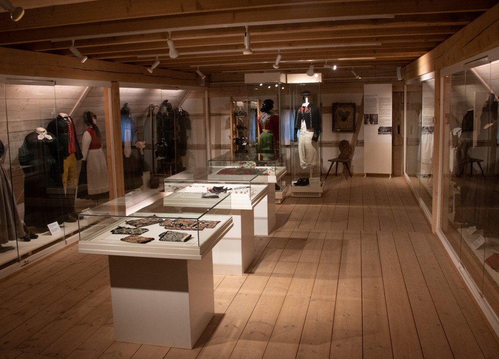 Das Trachtenmuseum zeigt auf drei Stockwerken die Alltagskleidung der ländlichen Bevölkerung zwischen ca. 1750 und 1900. Das Gebiet Altwürttemberg, aus dem ein Grossteil der ca. 180 Exponate der Dauerausstellung stammen, umfasste Neckartal, Albvorland, Schwäbische Alb, das Gebiet um Ulm, Härtsfeld mit Ellwangen, Hohenlohe, evangelisches und katholisches Gäu, Filder und die Einzugsgebiete Reutlingen und Tübingen sowie die Bollenhuttracht, die Sankt Georgener Tracht und die Tracht von Lehengericht. Es geht in der Dauerausstellung nicht darum hauptsächlich die schönsten und kostbarsten Stücke zu zeigen, sondern um die Tracht als Teil der Alltagskultur. Sie zeigt jeweils das Bild einer bestimmten Bevölkerungsschicht in einer bestimmten Zeit und Region. Jedes der ausgestellten Stücke war einmal Teil des Kleiderbestandes einer Privatperson. Nicht immer ist bekannt, wer es getragen hat, weil vieles auch mehrfach vererbt wurde. Zu sehen sind alle Varianten, von der Jugend bis zum Alter, von Werktag bis Sonntag und vom Fest bis zur Trauer. Nicht jede Form ist komplett vorhanden, aber dennoch, oder gerade deshalb, wird deutlich wie vielfältig die Kleidung war und wie sie sich durch die jeweiligen Modeeinflüssen gewandelt hat. Bänder, Hauben, Tücher und sonstiges Zubehör ergänzen das Bild.